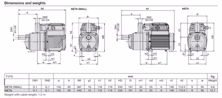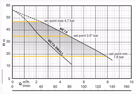 Self-priming booster set with built in frequency converter. MÈTA is a plug and play solution, the pump is equipped with an integrated pressure transducer, an integrated check valve and a built-in pressure vessel. The Vsd controls the start and stop of the pump and allows to keep a constant pressure.